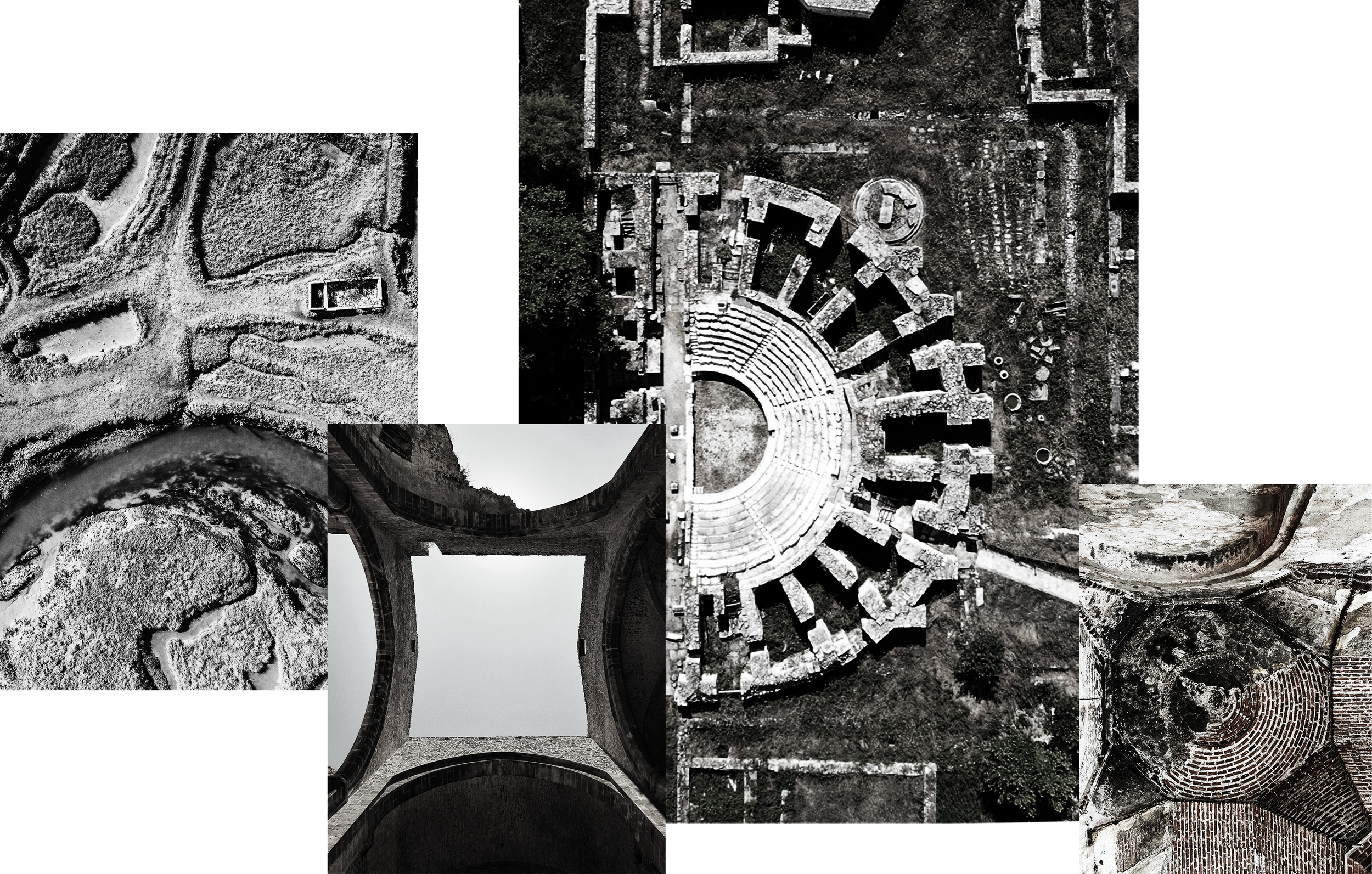 The inspiration for the third proposal comes from the beautiful top views of the discovered ancient cities. Theatres, castles and empire walls maiden from stones and marbles provide a very interesting theme for the generation of an initial letter - based logo.