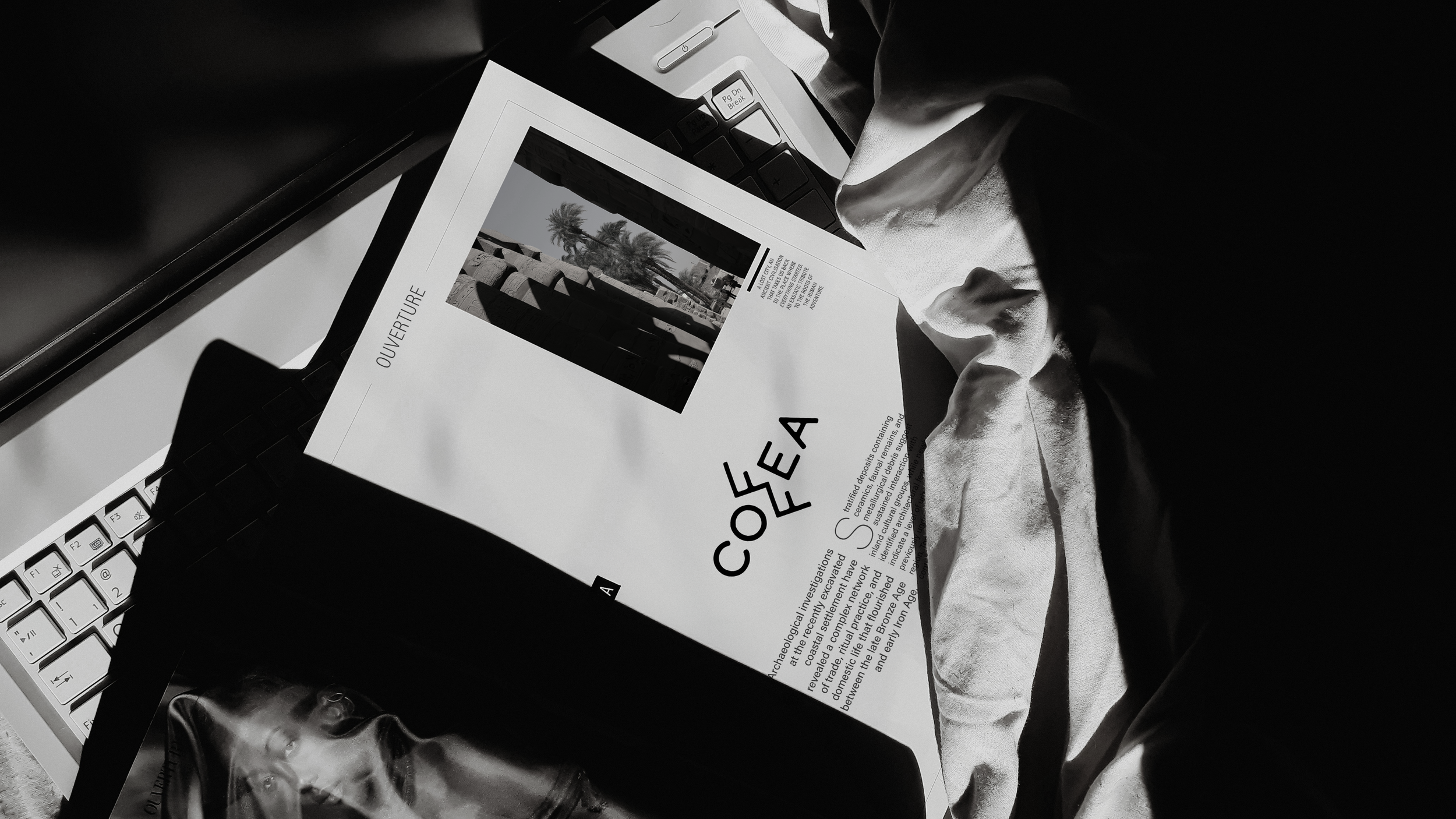 This proposal creates the appropriate associations related to archaeology, while making the name COFFEA memorable with the abstract illustration of the cup of coffee. The mood is casual and relaxed, similar to reading archaeological news online.