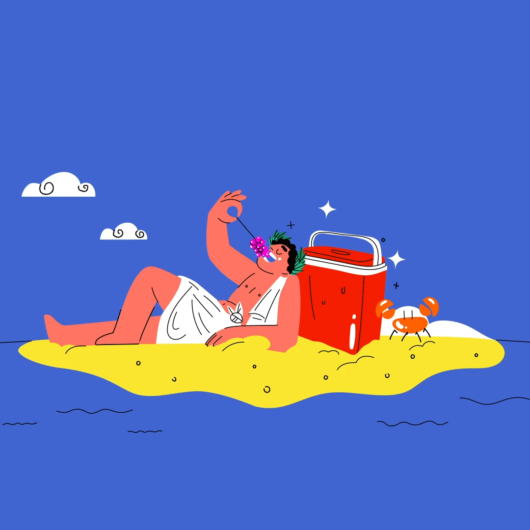 Dionysus keeps his grapes cool with his mini fridge from Naxos.