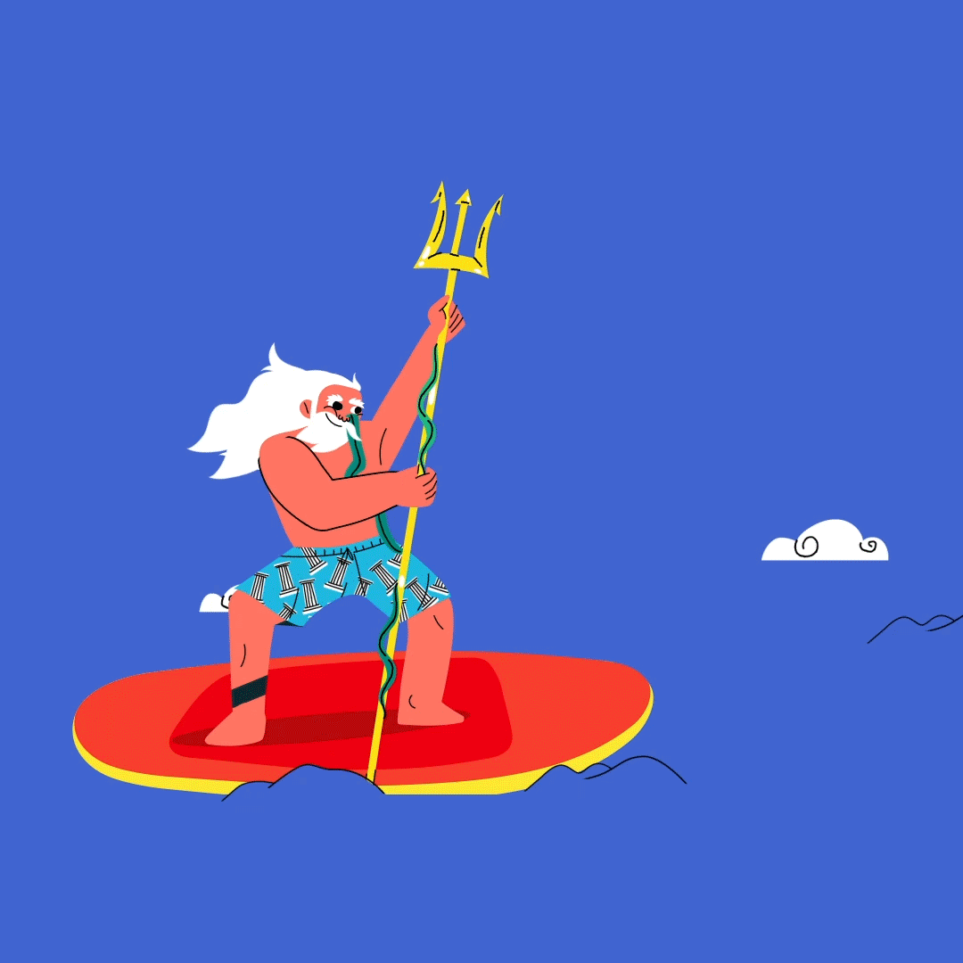 Poseidon surfs the Aegean sea with his SUP board from Sounio.