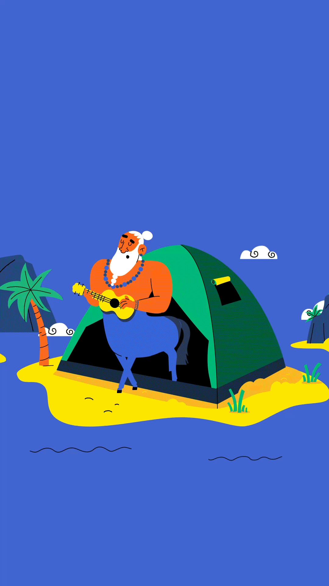 Centaur goes camping with his tent from Pelion.